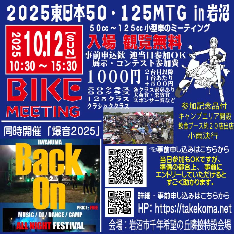 小型バイクのバイクミーティングをおこないます。ぜひご参加、当日のご来場をお待ちしています。